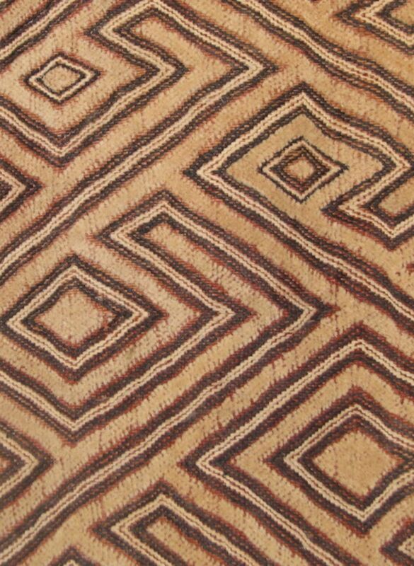 First half of the 20th century Kuba (D.R. Congo) ‘velvet,’ a raphia cut-pile and embroidered panel with a repeated square design. Patterning was often worked out as the embroiderer went along, and it consists of her interpretation of known Kuba patterns.